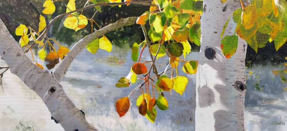 This is an oil painting done by my son Josh Sewell. Great! We paint together, and do art together and when we are out in the fall fishing, we take photos of the fall colors and enjoy capturing moments in our paintings. Full size s/n 19x42, ready to hang canvas prints of this image sell for $295.00